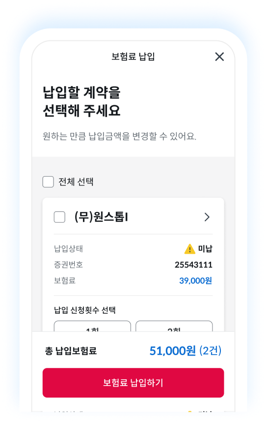 내 보험료를 모아보고 원하는 만큼 납입해요